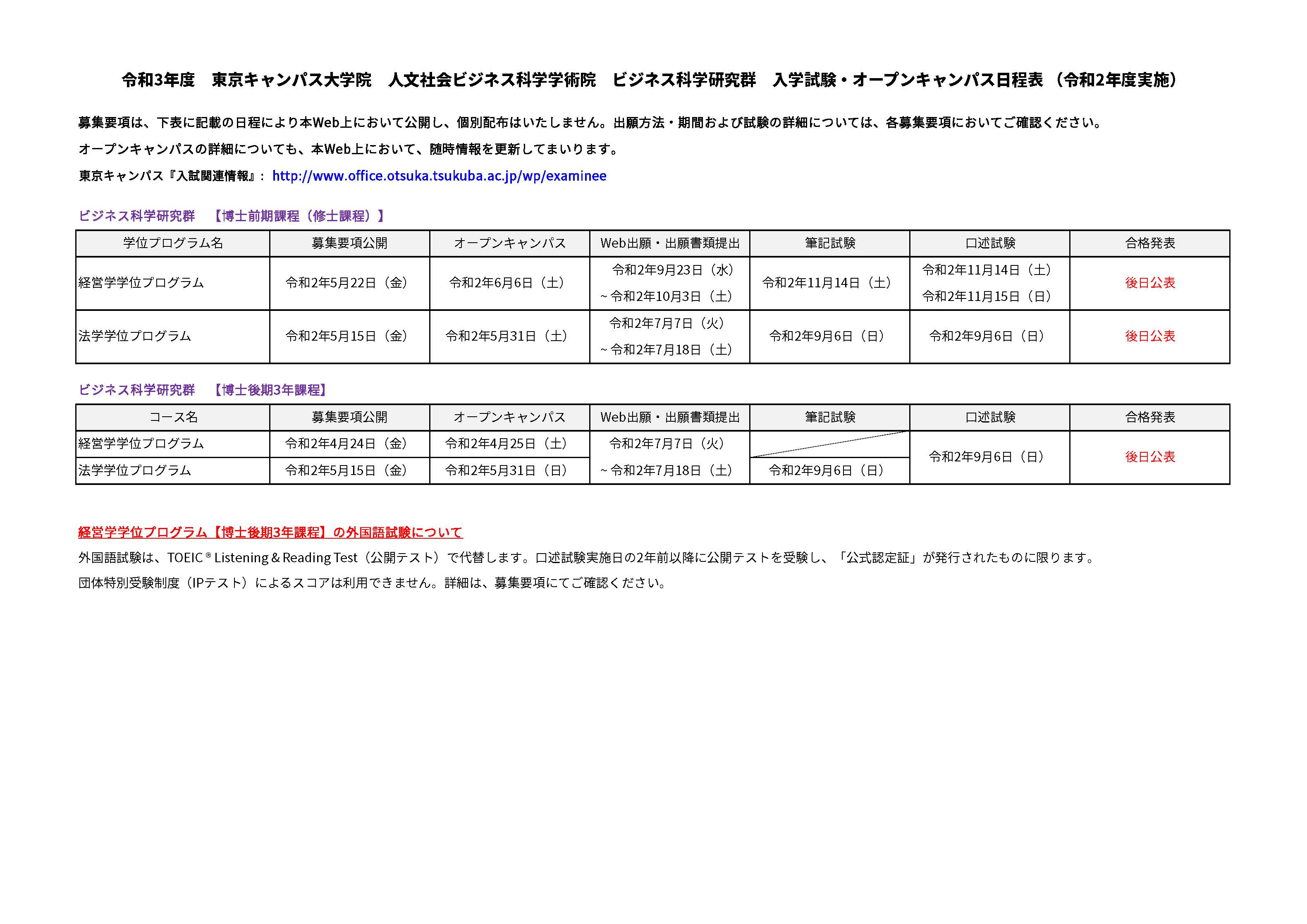 - 令和3年度入学希望者向け: 人文社会ビジネス科学学術院 ビジネス科学研究群 入試関連日程表