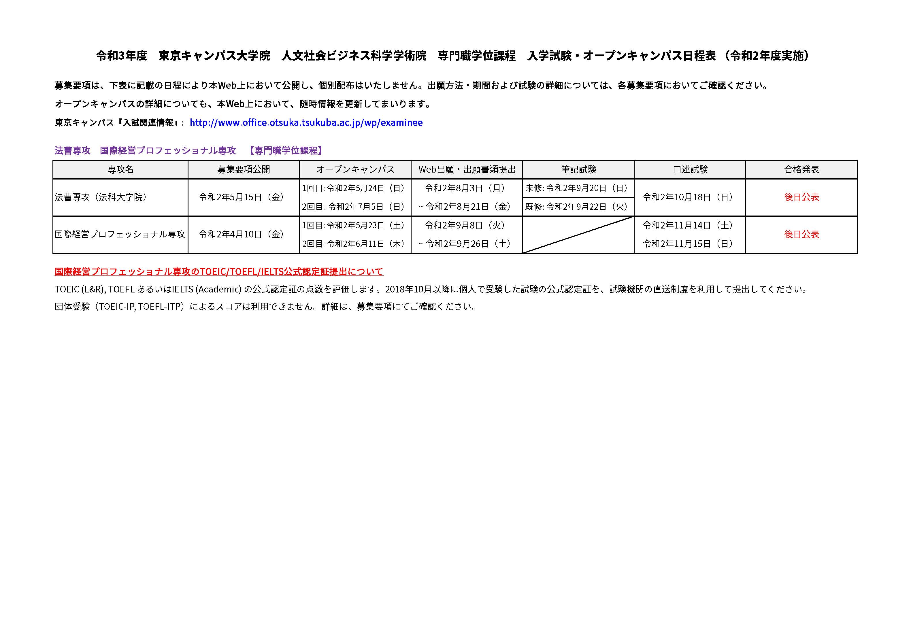 - 令和3年度入学希望者向け: 人文社会ビジネス科学学術院 専門職学位課程 入試関連日程表